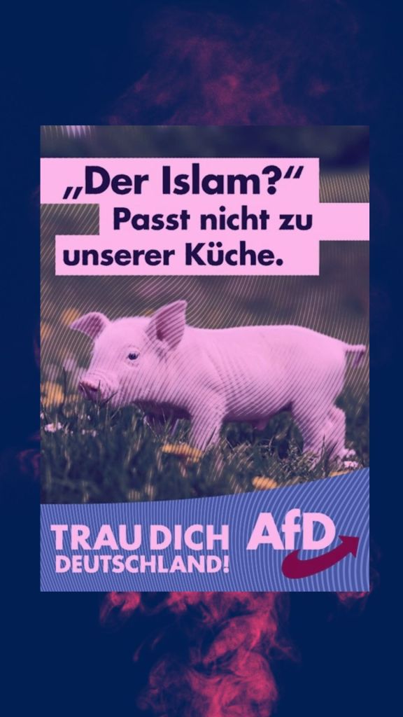 Die „ungebremste[..] Massenmigration nach Deutschland“ von Geflüchteten aus vor allem muslimisch geprägten Ländern, setzte die AfD in Verbindung mit Asylmissbrauch und Erschleichung von Sozial- und Gesundheitsleistungen. Parallel dazu stilisierte die AfD den Islam und die wachsende Anzahl von Muslim*innen als „große Gefahr für unseren Staat, unsere Gesellschaft und unsere Werteordnung“. So warnte der damalige stellvertretende Parteivorsitzende Alexander Gauland vor der „Islamisierung“ Deutschlands. Beatrix von Storch, zu dieser Zeit Europaabgeordnete der AfD, erklärte, der Islam sei eine „politische Ideologie“, die mit dem Grundgesetz nicht zu vereinbaren wäre. Entsprechend forderte die AfD in ihrem Wahlprogramm zur Bundestagswahl die Einführung der deutschen „Staatsbürgerschaft durch Abstammung“.